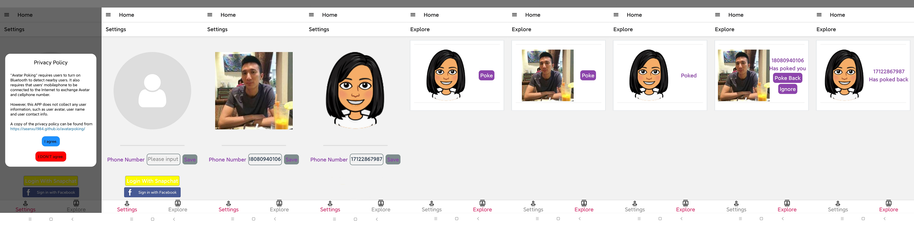 “Avatar Poking” requires users to turn on Bluetooth to detect nearby users. It also requires that users’ mobilephone to be connected to the Internet to exchange Avatar and cellphone number.